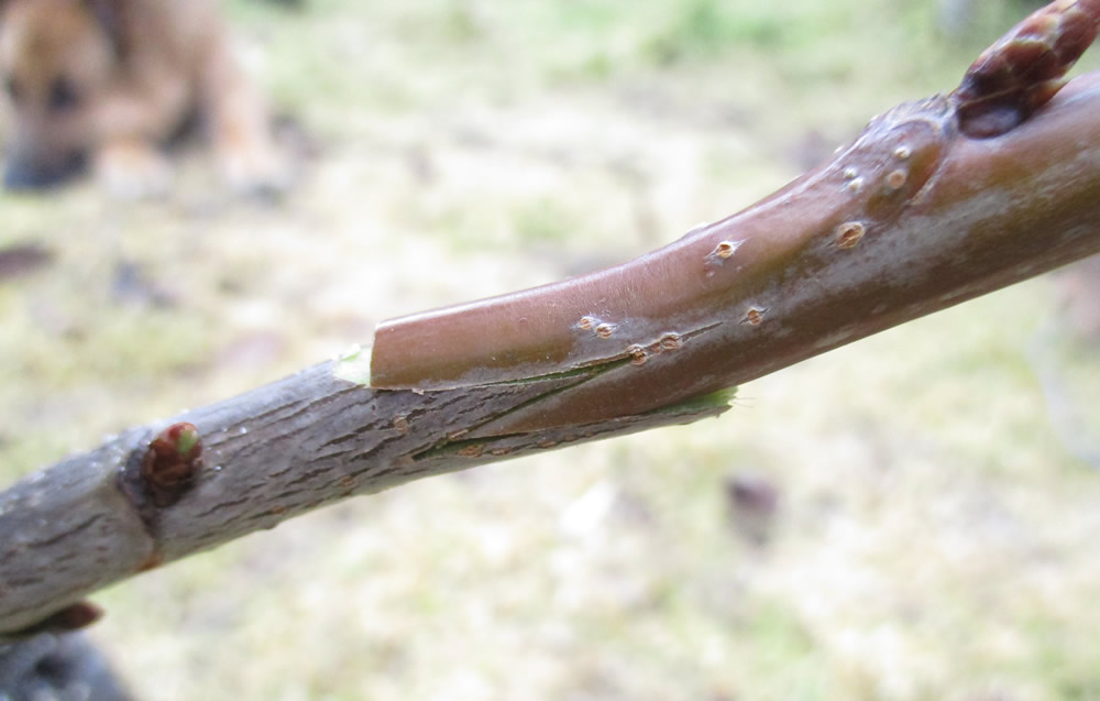 Las espigas o varetas deben haber estado conservadas en estado de reposo hasta el momento de injertar, ( para saber como conservar las espigas pincha aquí ) aún que es aconsejable que las espigas hayan estado en estado de reposo, por experiencia propia, puedo decir que al menos en ciertos frutales esto no es del todo necesario, ya que he realizado injertos de este tipo cogiendo las espigas ese mismo día, directamente de otro frutal injertado años antes con la misma probabilidad de acierto que con las espigas conservadas en estado de reposo.