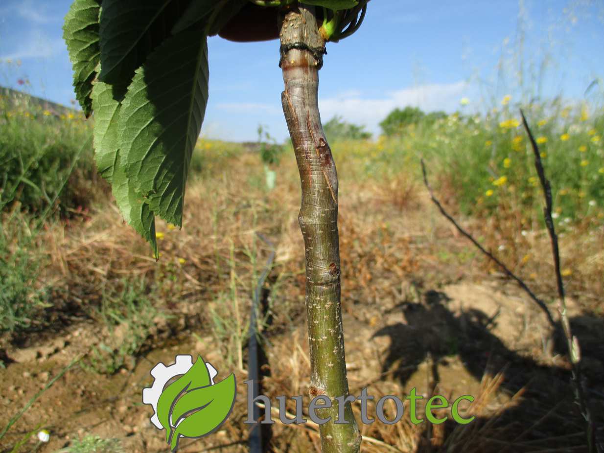 Y lo atamos con plásticos o cintas de injertar, aplicando presión para asegurar un mayor contacto entre espiga y patrón y siempre desde abajo hacia arriba, de forma que el plástico quede en forma de tejadillo y deje la zona sellada herméticamente.